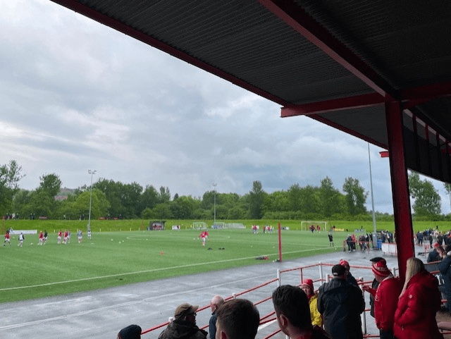 Unsurprisingly, it was Friday night party atmosphere at Albyn Park. After last weeks 4-1 away win in the first leg, you’d have expected a sizeable and expectant crowd to descent into the ground to cheer the team onto promotion. I’m unsure of what the official attendance was but it was a good few hundred anyway. Supporters younger, older but equally loyal all came to support their local team and was superb to see.