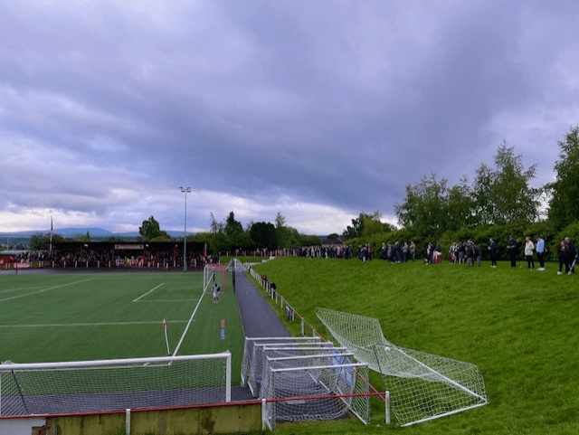 Albyn Park is a stone’s throw away from Broxburn town centre – ensuring it is deeply embedded into the community. Turning into the street where the ground lies, the main standing terrace sticks out like a sore thumb. The entrances and turnstiles are typically old-school, manned by gracious club volunteers. Upon entry, it is a small stairway to climb before entering the arena itself. The aforementioned standing terrace sits a bit off-centre but looked superb when full of Broxburn supporters. On the opposite side and behind both goals are grass embankments which gave a superb view of proceedings throughout the match.
